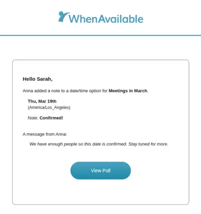 Your guests will receive an email containing your personal note and the specific date/time details.